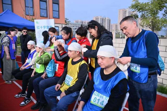 在现场,“红十字救援”摊位前总是挤满了人。仔细一看,志愿者们正在教授三角包扎法和海姆立克急救法。每个人都亲自感受到了。虽然他们不熟练包扎,但他们非常投入地学习。“我也想教家人学习这两种急救措施,以防出现紧急情况。”市民费邈说。