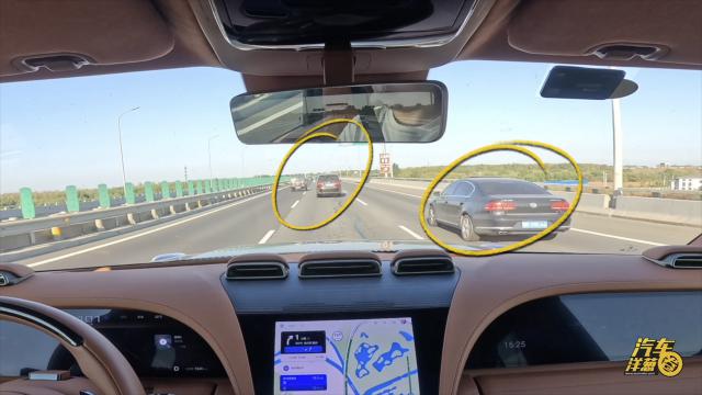 进入高速公路后,我们可以看到,两辆慢车出现在前方最左侧和最右侧的车道上。,他们的速度,显然比我们低,而且是高速限速。