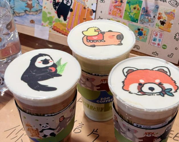 另外,南京红山动物园还有zoo coffee,商店里的印花咖啡都以动物形象为主题,小熊猫,小浣熊,僧面猴杜杜,都是顾客喜爱的拉花造型。