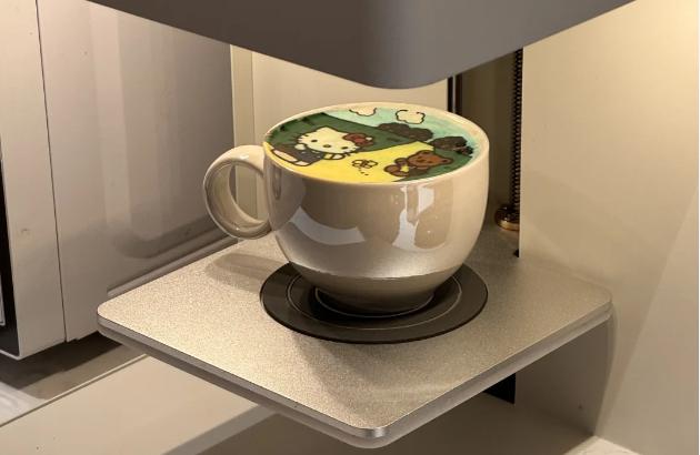 打印咖啡,也叫印花咖啡,简而言之,就是通过3D咖啡打印机,可以定制食品色素拉花。顾客可以选择自己想要的图案,只需几秒钟,喷嘴就可以在咖啡的顶部精确地“画”出一幅美丽的图案。