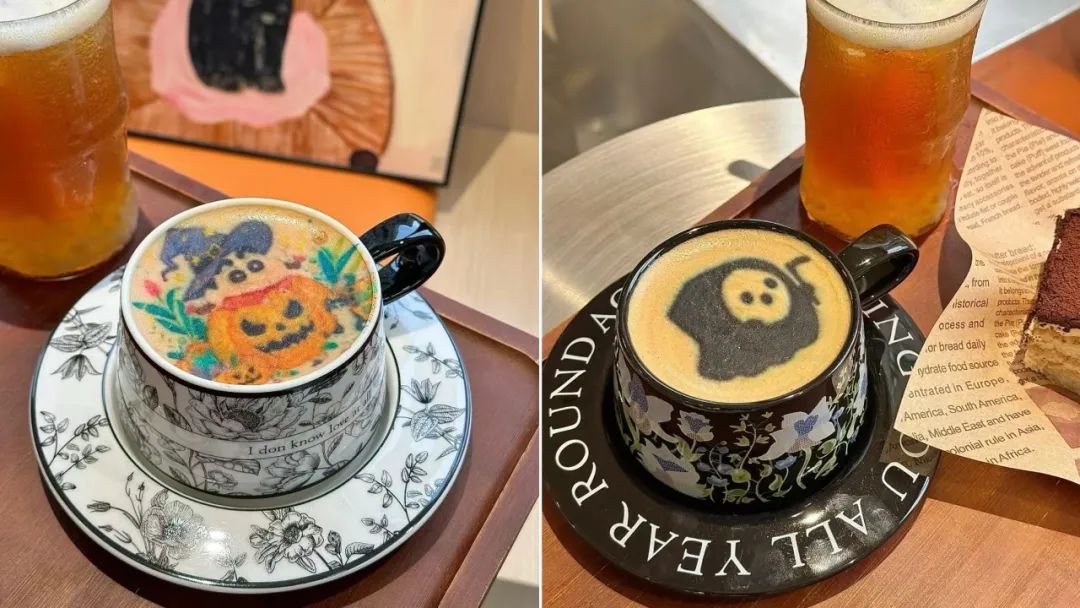 今年万圣节期间,杭州某咖啡店推出了张牙舞爪的小恶魔、怪异的黑猫、可爱的南瓜等万圣节限制咖啡图案,新颖有趣,引起了广泛关注。