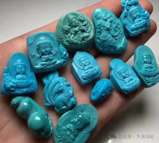 近两年的绿松石看起来很深很有光泽,但基本上一上手就会脏。同规格的绿松石质量比湖北绿松石差很多,这就是其他地方的绿松石
