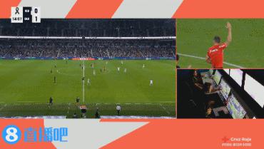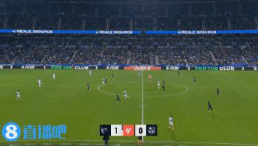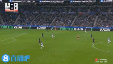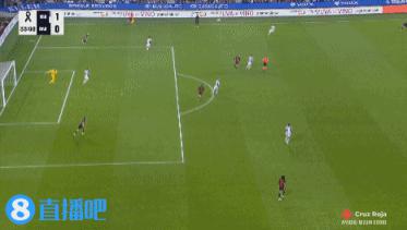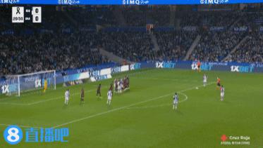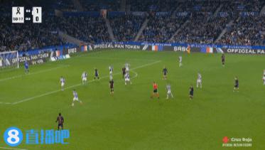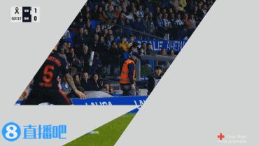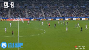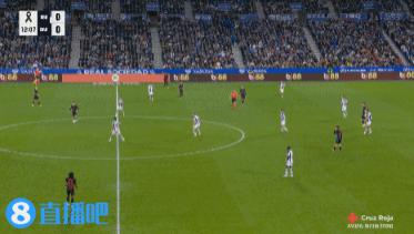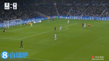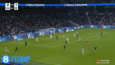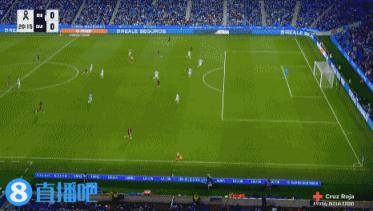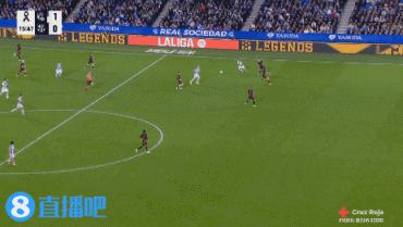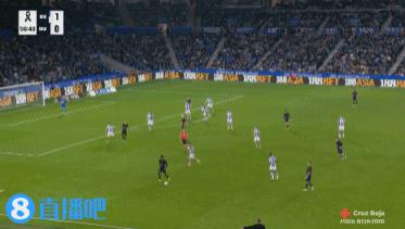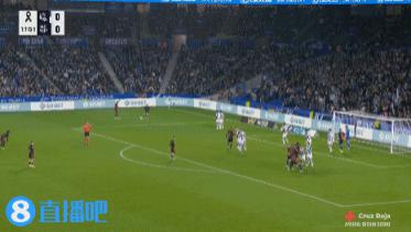 上半场的伤停补时 3 分钟,第 45 1 分钟,孔德传球失误,皇家社会反击机会,左路贝克传球,后点奥亚萨瓦尔包抄射球打偏。↓