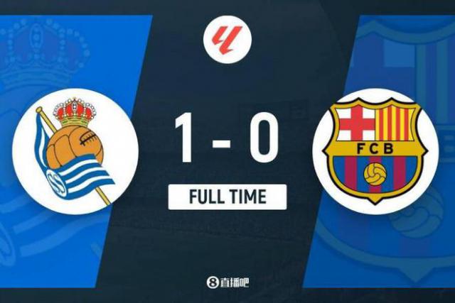 下半场伤停补时 4 一分钟,整场比赛结束,最后巴萨 0-1 皇家社会。