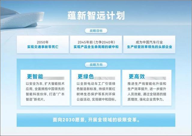 的确,为了实现公司的快速转型,广汽本田在此前发布的“蕴新智远”计划中提出了“ 2050 “企业安全愿景,交通事故零死亡” 2045 年前(争取 2040 2008年)实现产品全生命周期碳中和的战略和“成为中国汽车工业生产经营效率领先的龙头企业”作为战略目标。