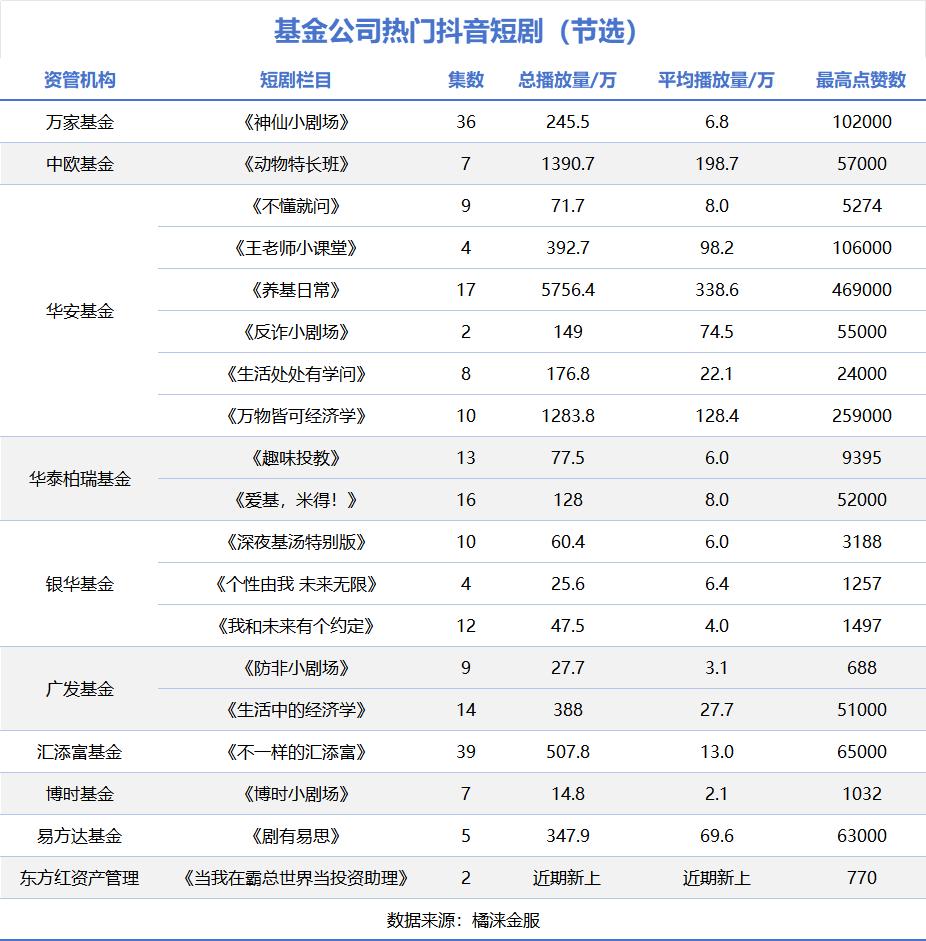 如果不限于热门的“网红”主题,从更广泛的角度来看,目前已有十多家基金公司推出了金融短剧。