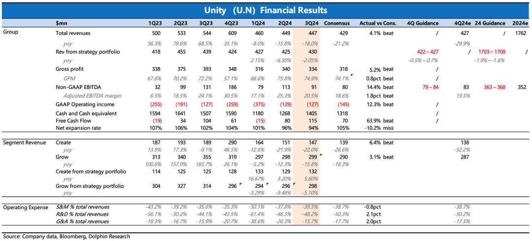 然而,由于市场对Grow业务的预期保守,对利润的预期更低。最终,Unity第三季度的营业亏损减少到1.27亿元,同比持平,EBITDA进行了调整。 超过公司指导和市场预测的0.9亿。