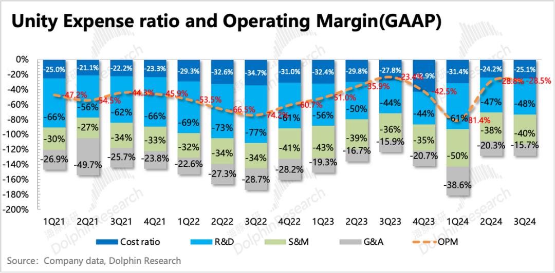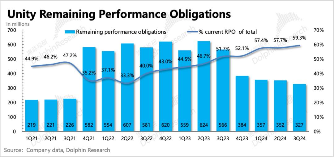 边际新增通常意味着客户对Unity的合作态度发生了变化。第三季度,专业服务、Weta等服务的影响将进一步关闭(第三季度Strategic portflio收入占总收入的比例增加,说明相关业务已经进一步关闭)。