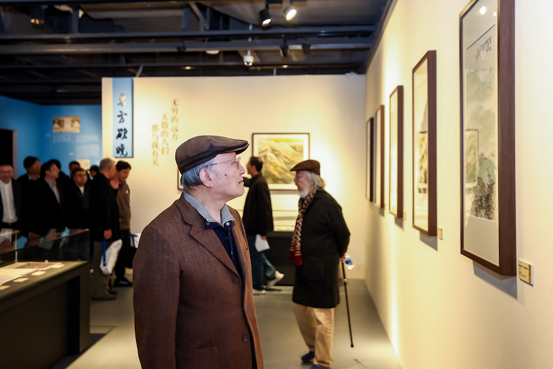80岁的著名山水画家萧海春为了表达对澎湃新闻十周年的祝贺,精心绘制了一股澎湃的浪潮。开幕式上,萧海春说:“无论是以前的纸媒还是现在的转型,澎湃新闻都达到了高度和可信度,期待着第二个更加精彩的十年。”