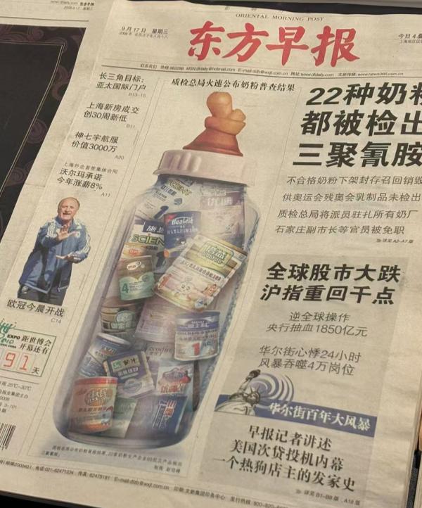 2008年,东方早报独家点名报道了三鹿奶粉引起巨大反响的样报。