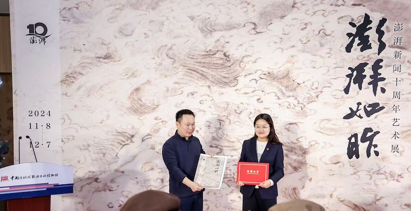 今年是《ThePaper》创立十周年,由《ThePaper》与中国近现代新闻出版博物馆联合主办的《ThePaper昨-ThePaper十周年艺术展》于2024年11月10日至12月7日在中国近现代新闻出版博物馆(上海市周家嘴路3678号)五楼展厅展出。国内文化、艺术界的专家学者和展览艺术家亲自参加了开幕式,并参观了澎湃新闻,参加了澎湃新闻艺术交流会。