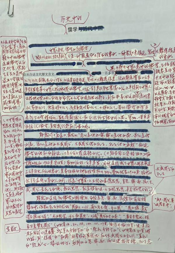 著名历史学家杨国强在《东方早报上海书评》中发表的手稿《历史上的儒家》
