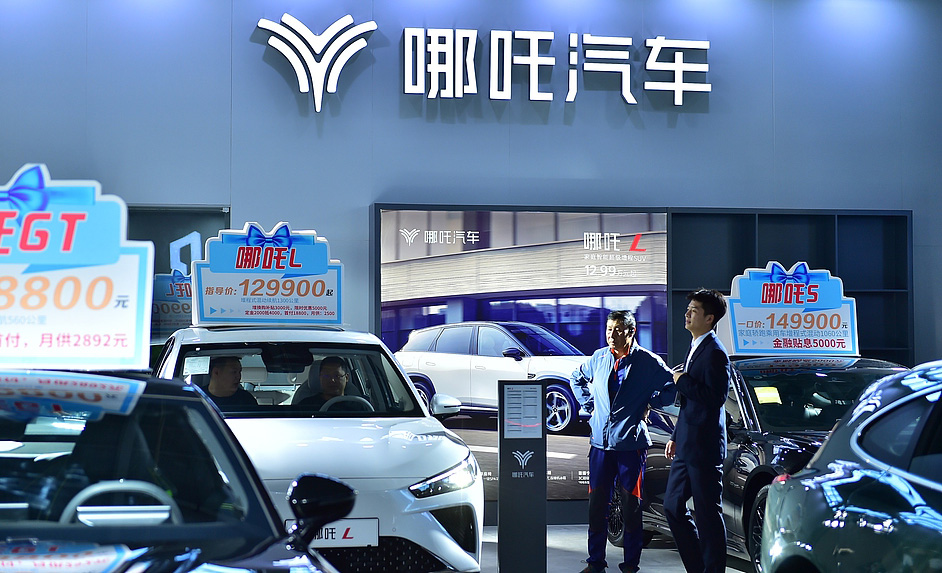 沈阳国际车展上的哪吒汽车展台于2024年10月3日举行。
