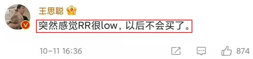 王思聪更受欢迎的评论是“突然觉得RR很低,以后不会买了”。劳斯莱斯只是在半个月后出来道歉,下线了相关视频。