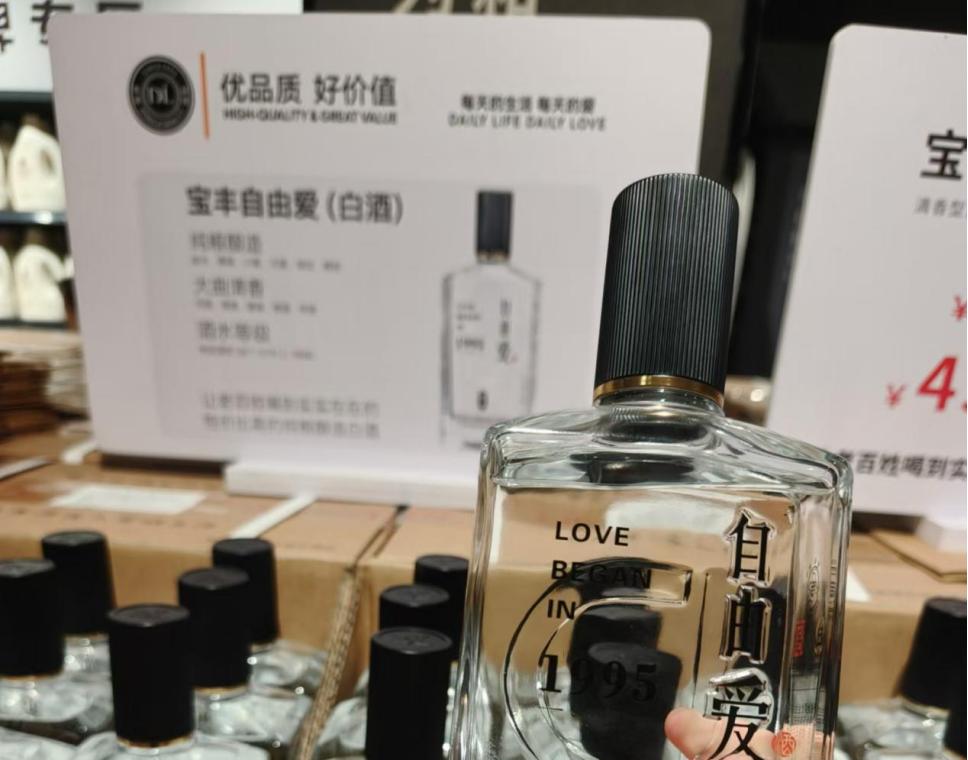 永辉超市还建立了胖东来自有品牌专区,不过种类不算多,有洗衣液、宝丰自由爱白酒、矿泉水等,值得一提的是,矿泉水一箱15瓶只需18元,每人限购一箱。