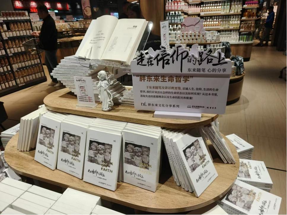 在门店中央位置还特意留出一个货架,上面摆放的是于东来的随笔。