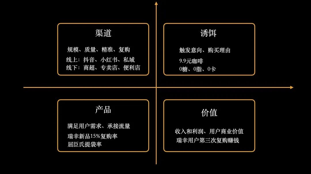 获得客户的因素有四个:渠道,诱饵,商品,价值。简要说明:
