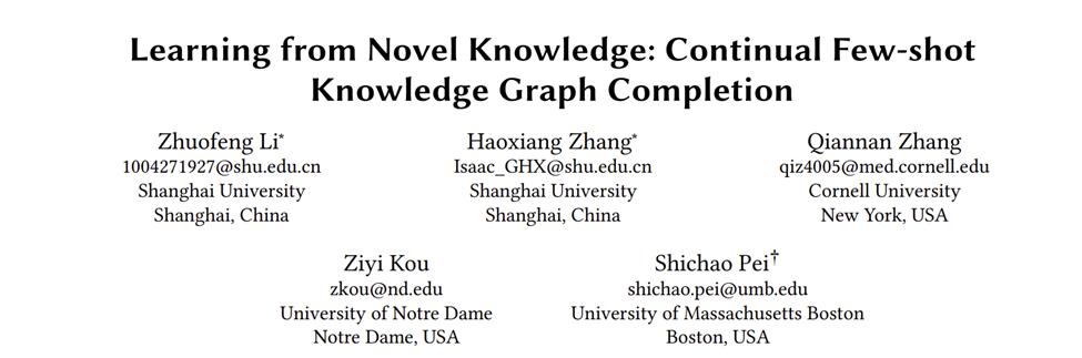 论文标题:Learning from Novel Knowledge: Continual Few-shot Knowledge Graph Completion