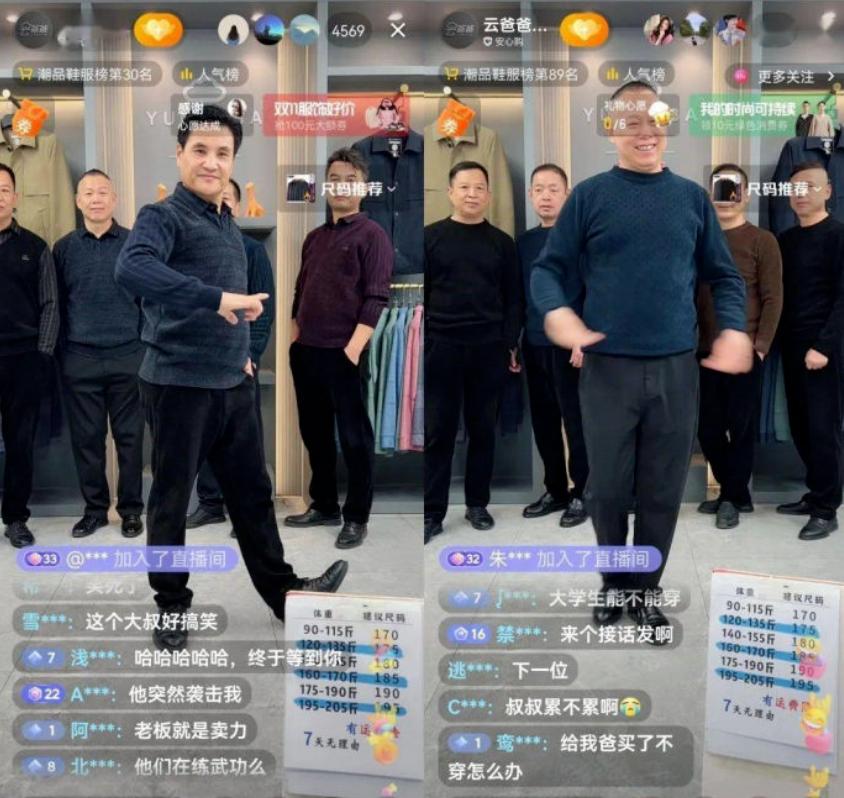 在社交平台爆红之后,“云父亲”直播销售的中老年男装的销量也随之增加。据当时的直播数据显示,每月41场直播累计观看人数为3821.7万,累计销售额为1260万元。