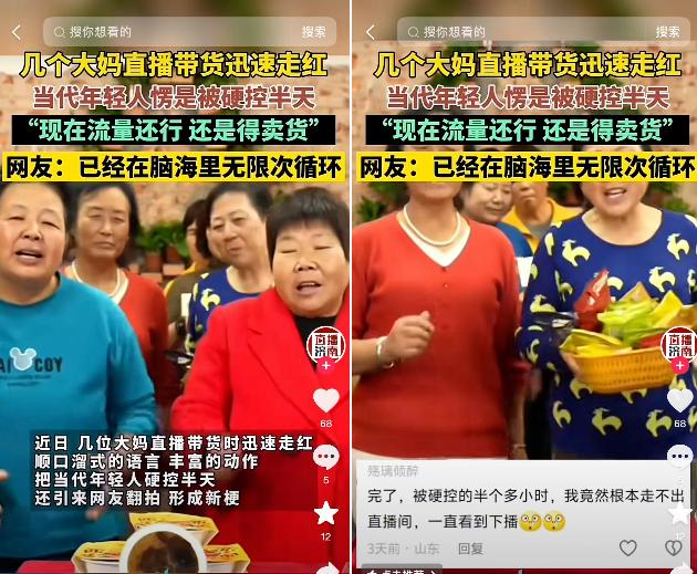 “阿姨,阿姨,做个卖家。今天来卖货,你刚好路过。只要9.9元,邮寄就可以上车。”近日,山东济南几位阿姨用顺口溜的语言,两人一组,排队在镜头前卖货。凭借丰富的表情和动作,他们打开了一个小组直播卖货,并迅速走红。直播过程中的视频和录屏吸引了网友翻拍,有网友高呼“被硬控制半小时看关播,在脑海中不断循环”。
