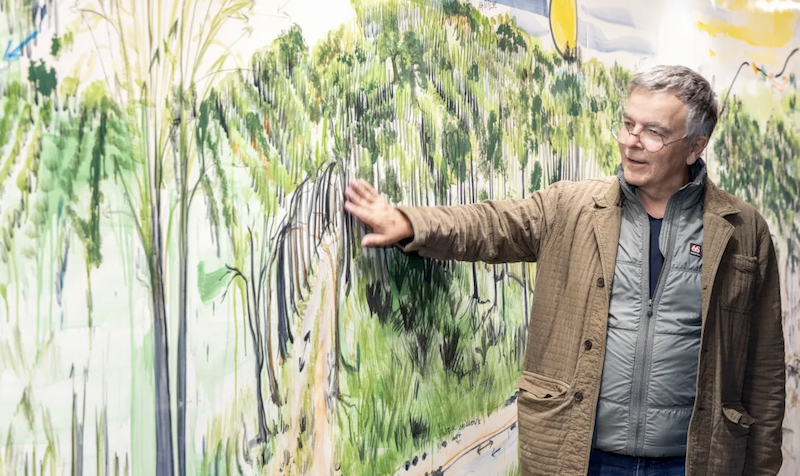 这两幅极具纪念意义的壁画分别被称为“城市森林”(La forêt)和《友谊》(L'amitié),它们都是由中国陶瓷之都景德镇法布里斯创造的。艺术家与景德镇的工匠在创作过程中进行了深入的交流,他们掌握了瓷器和山水画的精湛技艺,也有着悠久的历史传承。通过这个创作项目,法布里斯在了解了瓷器创作之后,开发了一种新的瓷器绘画和釉料技术。