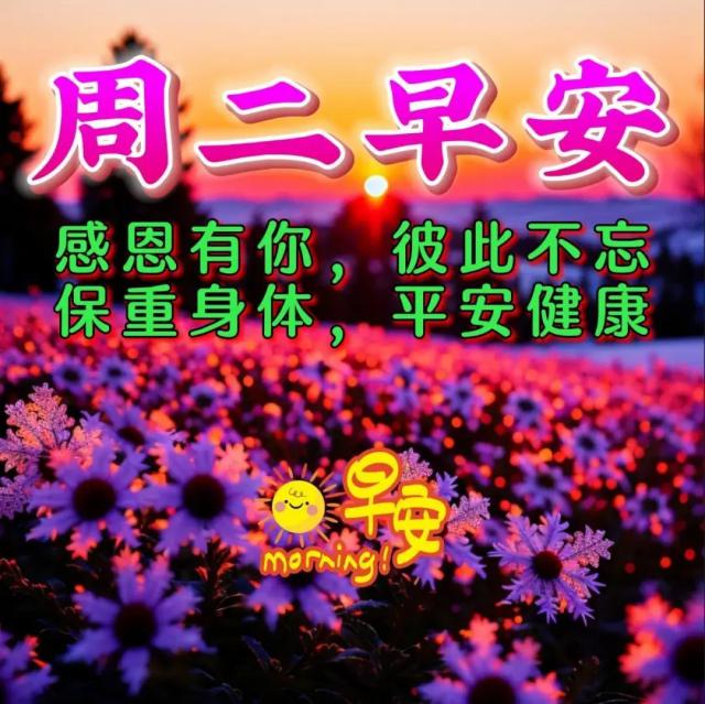星期二早上好!话不多,温暖了彼此的心,问候让我们每天都充满阳光。让你微笑着补充正能量,用一个温暖的早晨好,祝你每天快乐!