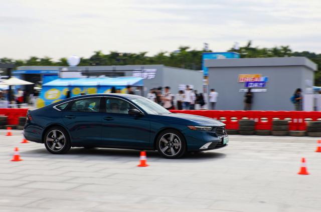 在广本底盘技术的加持下,可以看到雅阁 e:PHEV 转弯时车身姿势保持非常稳定。现场很多粉丝第一次开这辆车,但还是可以轻松驾驶,足以看出广汽本田在新能源驾驶方面下了很大功夫。