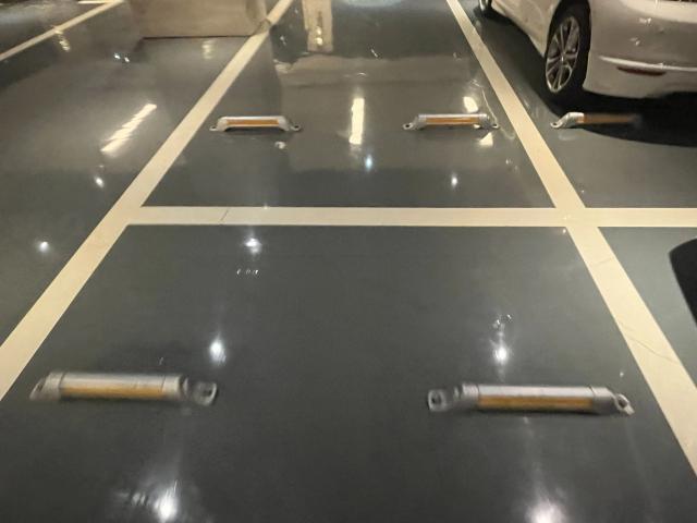 甚至连停车位上的挡车器都是不锈钢做的。