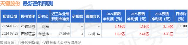 根据近三年发布的研究报告数据,证券之星数据中心西部证券单慧伟研究员团队对该股进行了深入研究,近三年的预测准确度均值为 预测77.59% 2024 年度归属净利润为利润 1.81 十亿,根据现价转换预测。 PE 为 32.75。