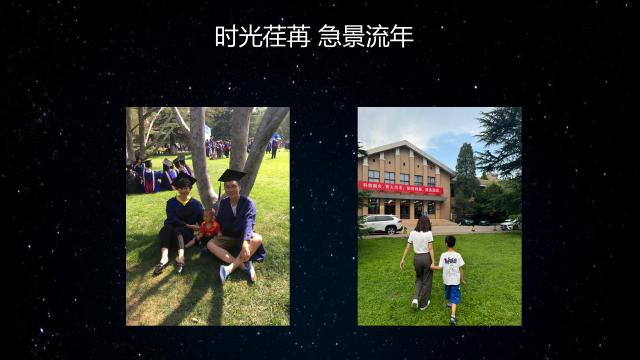 左边的照片是我的孩子,他叫图图,今年, 7 岁。这是在 2018 2000年,我和爱人带着孩子来到学校,一起拍了毕业照。当时,我们定格了一个美好的时刻,带着对未来的热爱和憧憬。时光飞逝,今年我们回到这里。