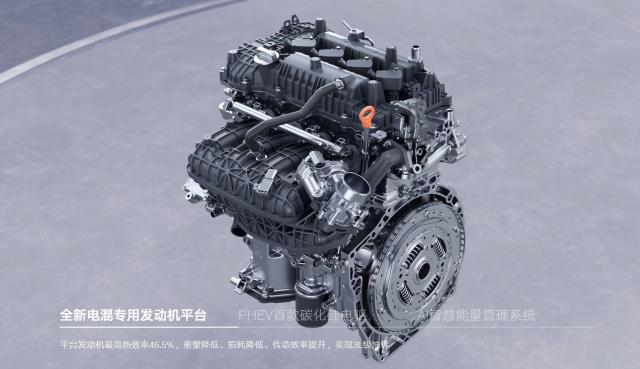 当然,主要表现还是需要实测的,但是从技术层面,我们也可以看到这一套。 EM-i 超低油耗的原因是系统。 1.5L 混合动力专用发动机,达到了最高热效率 46.5%,再一次刷新了汽油发动机量产的热效率记录,同时搭配一台 11 合 1 高度紧凑,轻量化 E-DHT 变速箱,在整合方面也学习比亚迪。