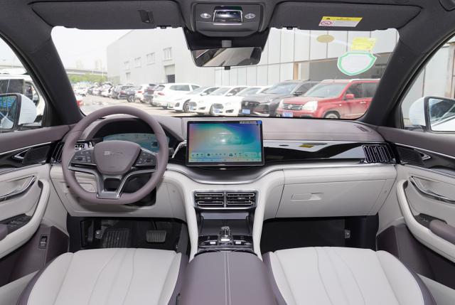 设计方面见仁见智,但与宋代有关 PLUS、宋 Pro 等待型号比较,星舰 7 EM-i 驾驶舱的材料和气氛,的确要显得更加清新、精致些,两款比亚迪车型的内饰,还是比较传统的布局和风格。