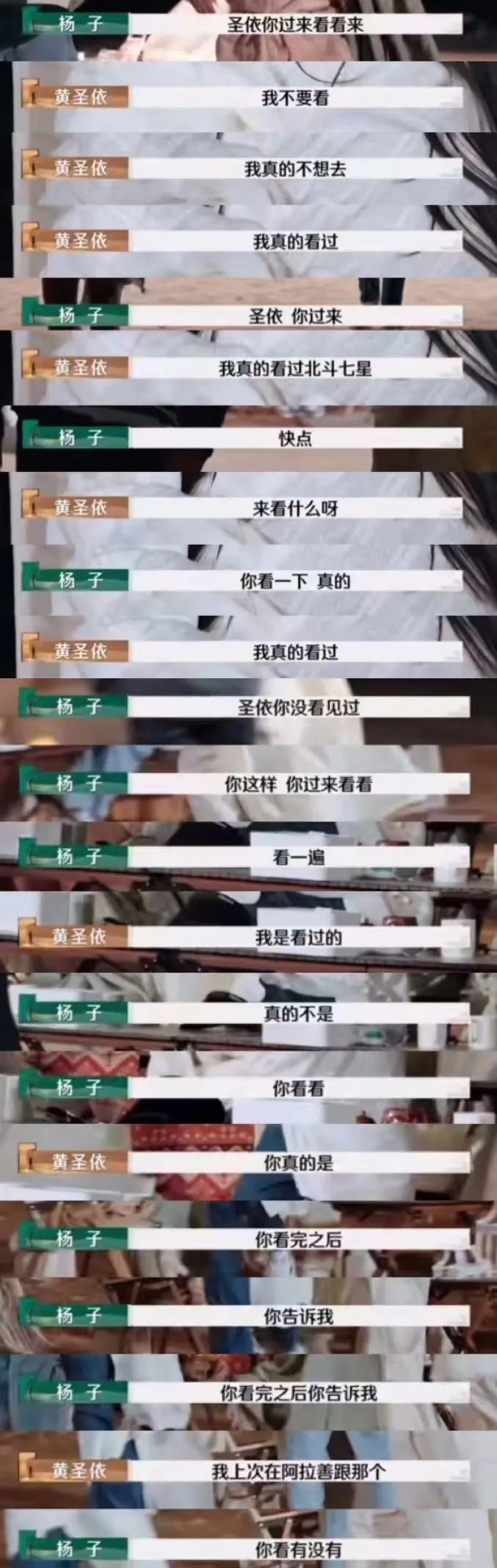 作为夫妻和工作伙伴,杨子经常压制黄圣依,“孩子”、“没文化”、“在福中不知福,害人害己”、“圣依一想起来就笑”。