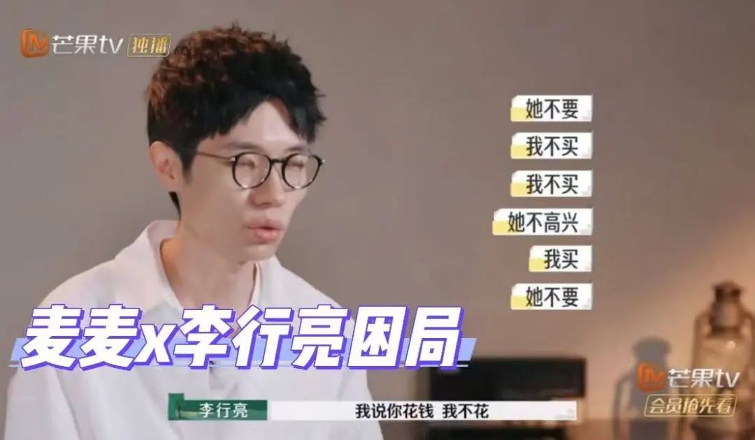 李行亮说,两人的关系就像“鬼打墙”:麦琳想要礼物→李行亮送礼物→麦琳生气是因为礼物没有送到他的“心趴”上。→李行亮受到打击,不敢送人。→麦琳不高兴,更想要礼物。