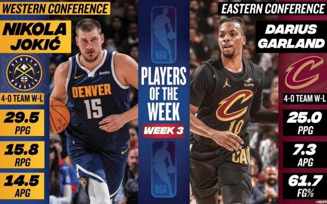 NBA 官方宣布,第一 3 加兰和约基奇是周东西部最好的球员。