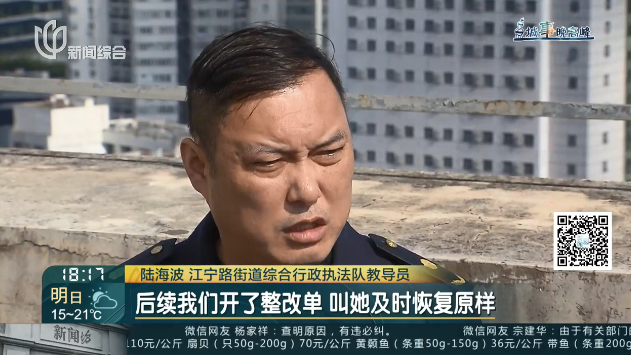陆海波 江宁路街道综合行政执法队教官:现在有内部装修。到目前为止,我们仍然需要通过物业和居委会进行检查和交谈,包括居民和房屋管理部门。