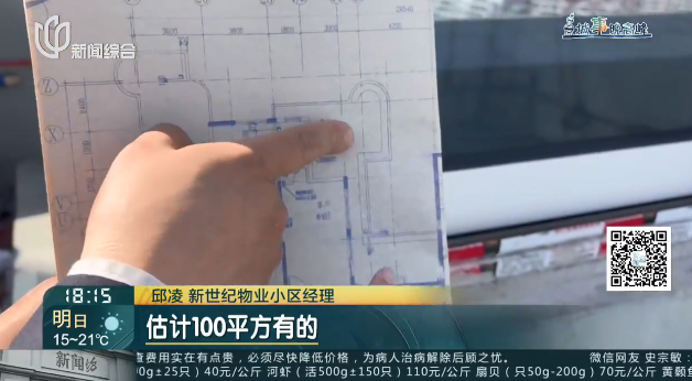 邱凌 新时代物业小区主管:图纸上的三个地方都是空的露台,现在等于都搭好了,估计有100平米。
