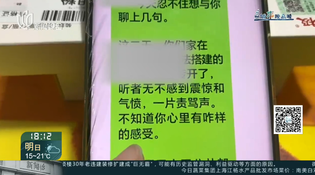 但这一次,看到涉案业主得寸进尺,还把装修材料挂在屋顶上,建成了一个引人注目的“巨无霸”。其他业主都很生气,担心会影响建筑结构的安全。他们选择不再沉默,向各方投诉。