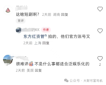 据东方红资产管理局介绍,短剧是对创意投资教育系列内容的不断探索,引导投资者树立正确的投资理念。此前,公司还推出了“后宫”系列短剧《后宫反诈骗》,主要是宣传反诈骗,提醒投资者防范诈骗。