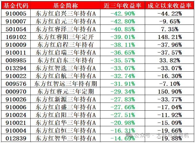Wind显示,截至11月11日,东证资产管理公司近三年仍有17只三年期商品业绩为负,其中13只自成立以来收益为负。