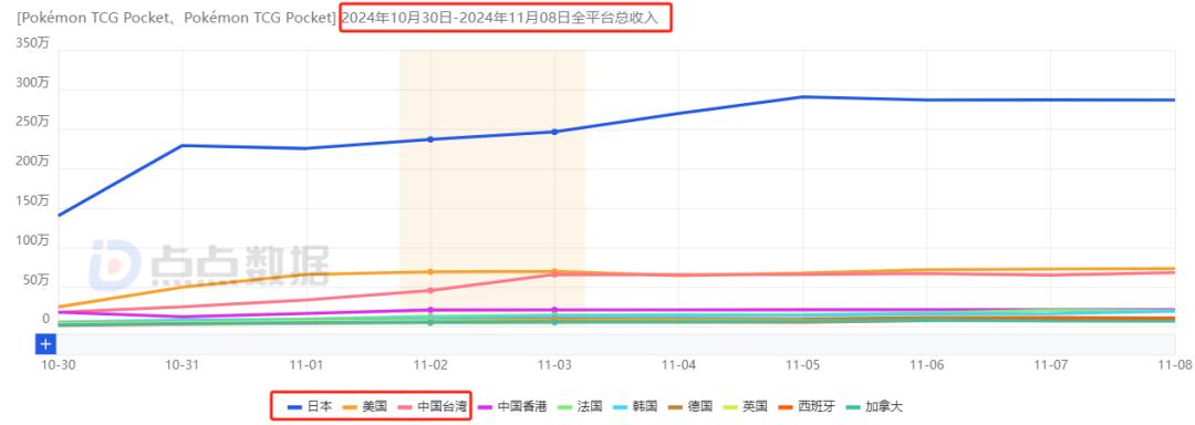 先是宝可梦IP集换卡游戏于10月30日上线。《Pokémon TCG Pocket》在全球范围内展现非凡的潜力,上线10天(截至10月8日)累计下载量超过1080万,总流量达到1080万。3.4亿元,目前日下载量仍保持在83万,日流量超过410万。