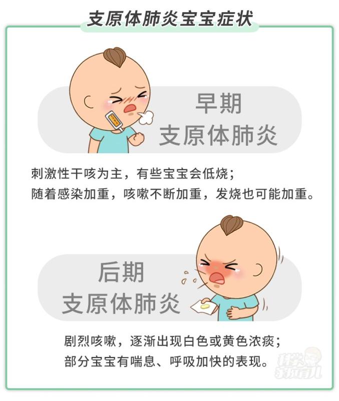 其主要症状是干咳,近一半的婴儿会出现发热——这也是支原体肺炎的狡猾之处:神似感冒,易使人掉以轻心。