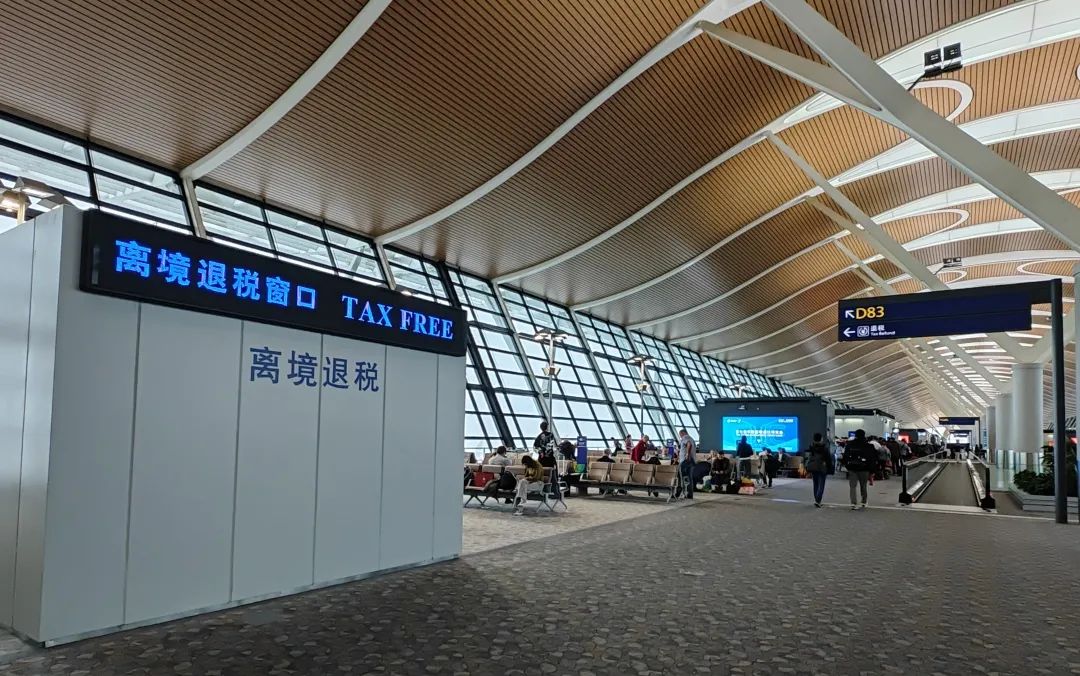 "退税单已经安排好了...验证已经完成。“在位于浦东国际机场2号航站楼出境口岸隔离区D75号登机口附近的香雪海退税店,在店员的帮助下,一名外国乘客购买了几件手工艺品和特产,并通过“智能乘客自助终端”申请了海关退税验证手续,验证确认手续不到5分钟就完成了。随后,店员带领乘客前往D83号登机口附近的中国银行离境退税代理窗口办理退税手续,整个过程大约需要20分钟才能完成退税。