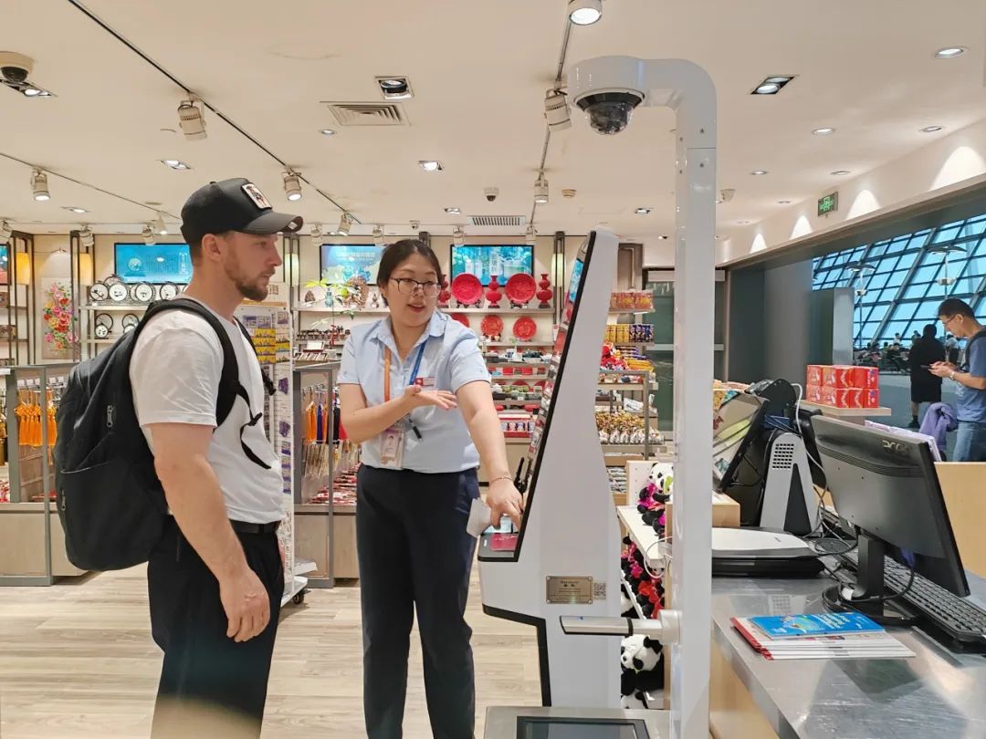 香雪海作为浦东国际机场2号航站楼出境口岸隔离区唯一的退税店,承担着大量海外游客的购物需求。“我们店里的传统手工艺品、地方特产、国潮文化创意等产品一直深受海外游客的喜爱,会有更多需要退税的海外游客。上海香雪海国际贸易有限公司党支书程磊表示,“即买即验”海关远程验证新模式的试点应用也吸引了一批海外游客来这里“打卡”,感受智能海关服务。他说:“我们不仅是一个购物平台,而且逐渐成为向海外游客展示中国形象的窗口。我们希望通过丰富周边设施、增加离境退税服务专员、提高员工专业能力等措施,为海外游客提供更好的购物服务。在“即买即验”新模式的基础上。”