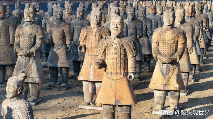 这些兵马俑高度还原了秦朝士兵的形象,每一尊都承载着沉重的历史信息。他们坚毅的脸庞和威武的姿态似乎在默默地诉说着金戈铁马时代秦始皇扫清六国统一中原的壮丽史诗。
