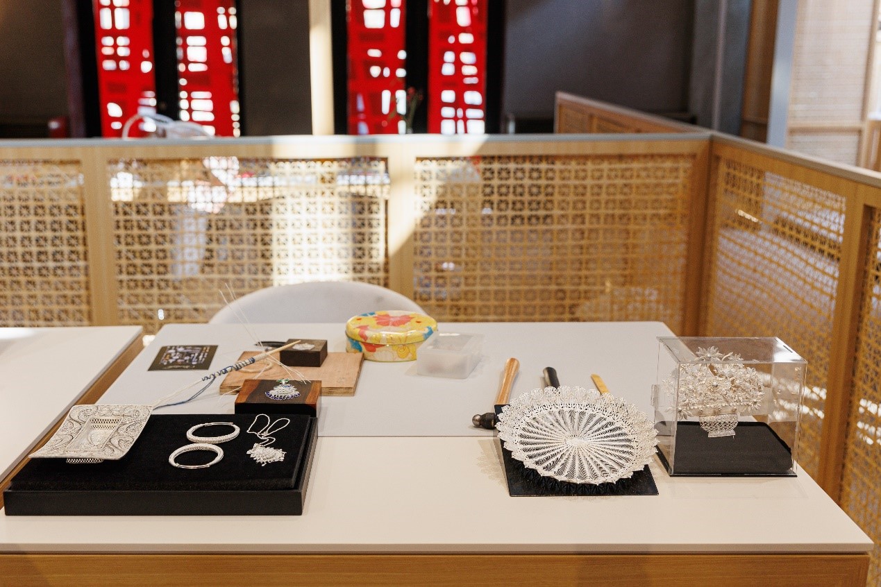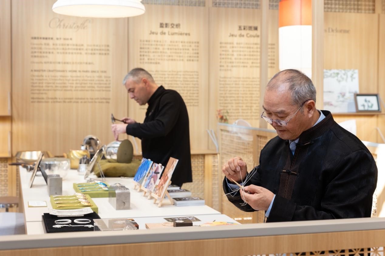上海工艺美术职业学院丝绸镶嵌技术传承工作室领导,74岁贵州工艺美术大师吴智编织了一辈子银器丝绸,与1830年成立的法国百年银器品牌Christofle昆庭同桌对话。昆庭被称为皇家专用供应商商品餐具、珠宝和家居装饰领域的优质银器。