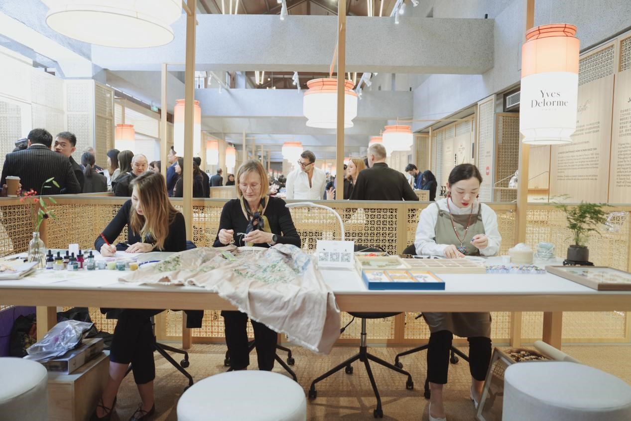 在上海张园石库门的老房子里,正在进行中法工艺之间的精彩对话。十几张长桌摆好,坐在中国工艺大师的同时,坐在法国精品行业联合会的著名工艺大师身上。刺绣、雕刻和香气调节...工艺大师们用手中的技能跨越文化芥蒂,形成中西文化的碰撞、交流和相互学习。