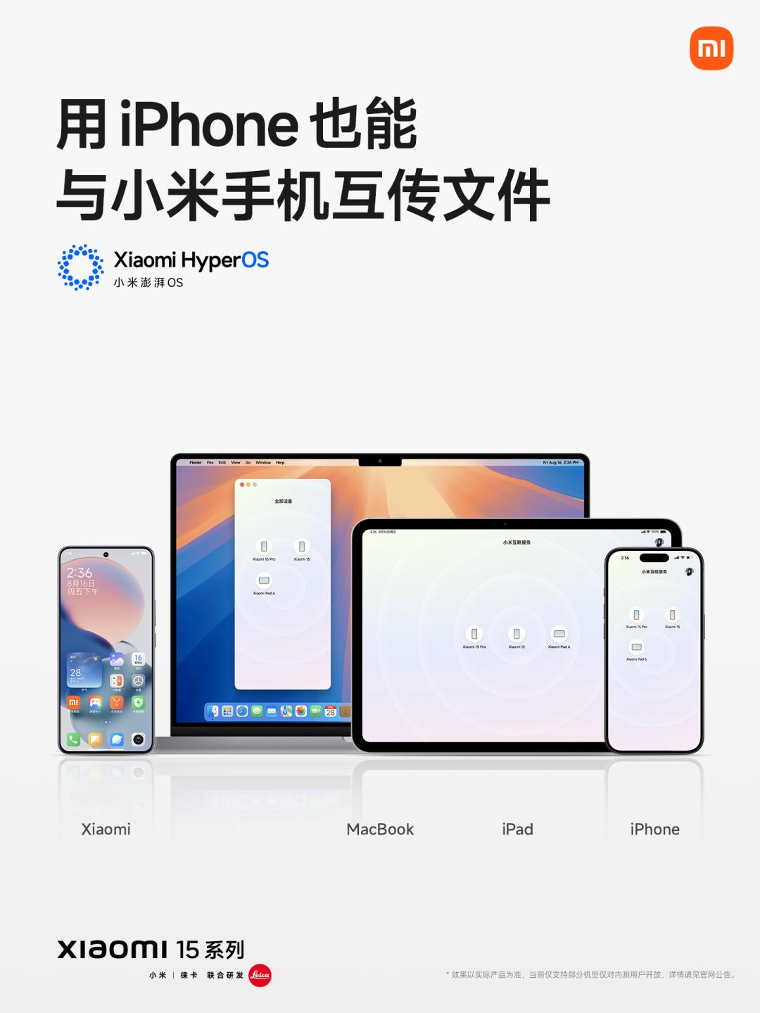 例如小米15号称可以全面支持苹果生态,支持和Macbook、iPad、iPhone互传文件,投影Macbook镜像,支持苹果办公套件等,同时在外观上也与苹果的冷雕玻璃背板技术相匹配。