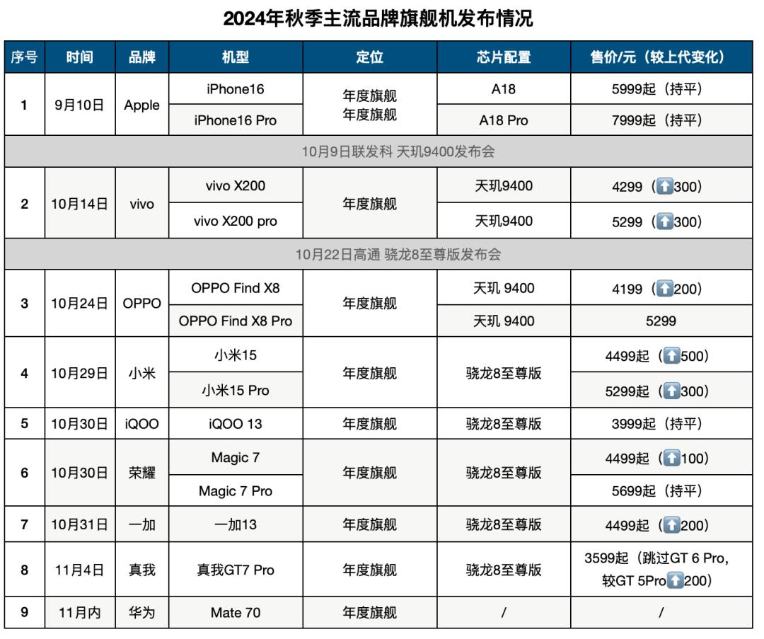 除华为Mate系列新产品外,小米、OPPO、各大主流品牌如vivo的2024旗舰新产品,已经排队集齐。