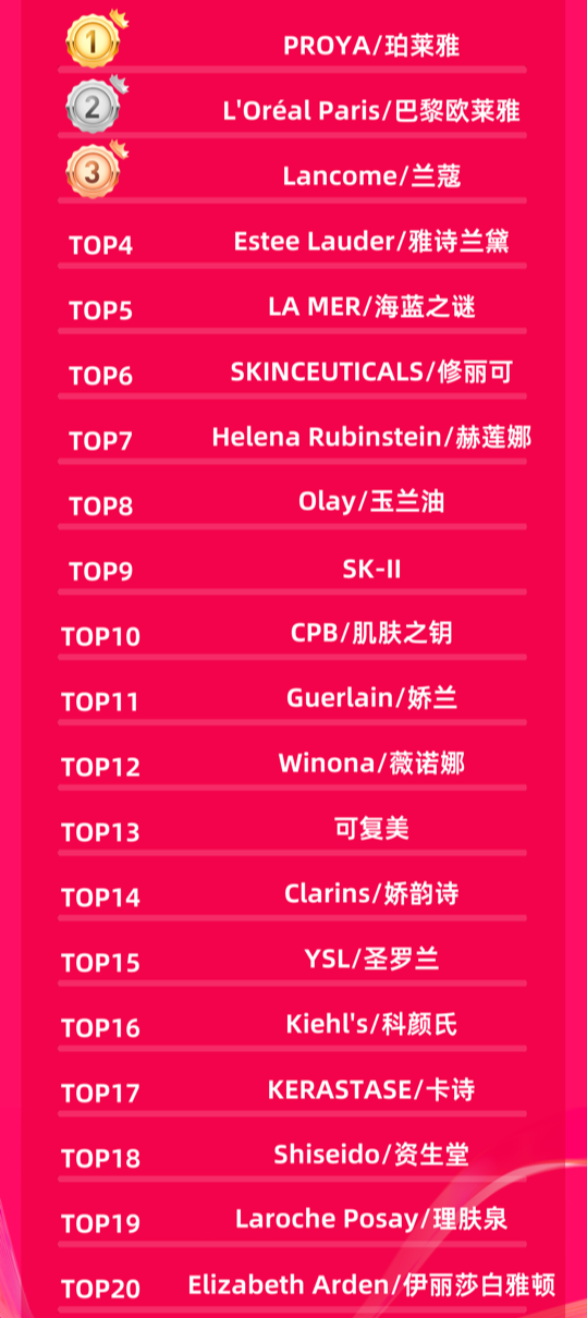 据天猫大美容数据显示,今年双十一预售销售排名前20的品牌中,国际品牌再一次从去年的10家上升到15家,就像2022年一样。